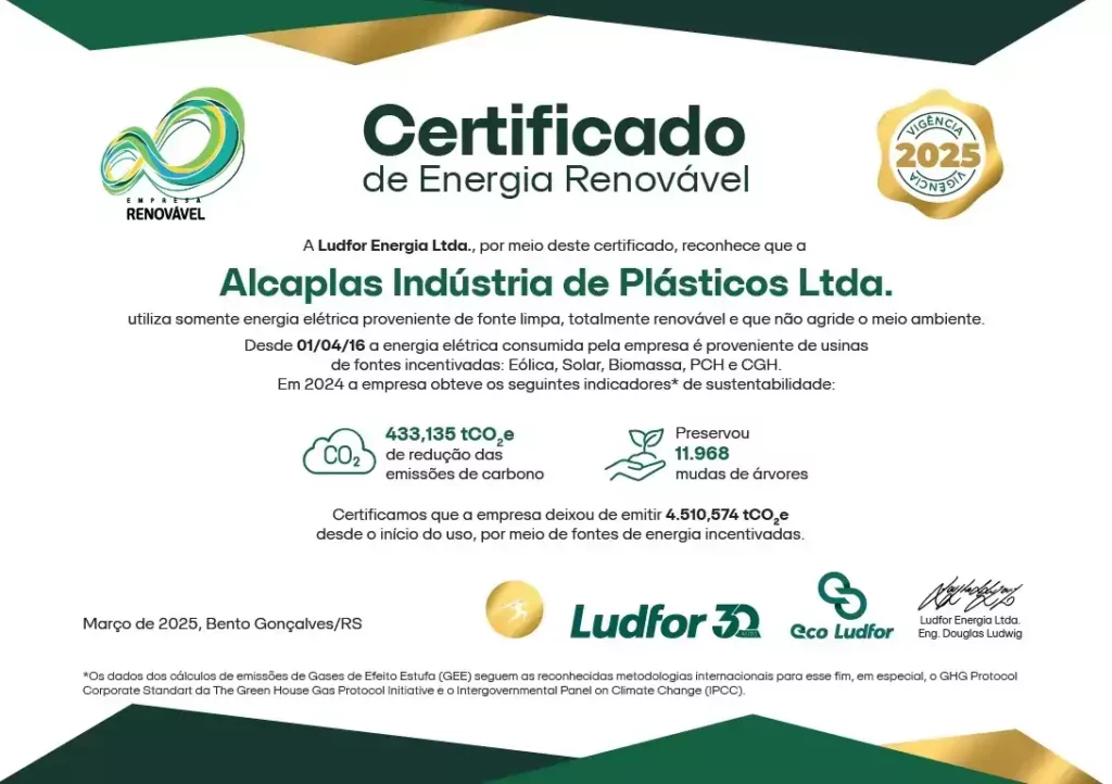 Certificamos que a empresa deixou de emitir 4.510,574 tCO2e desde o início do uso, por meio de fontes de energia incentivadas.